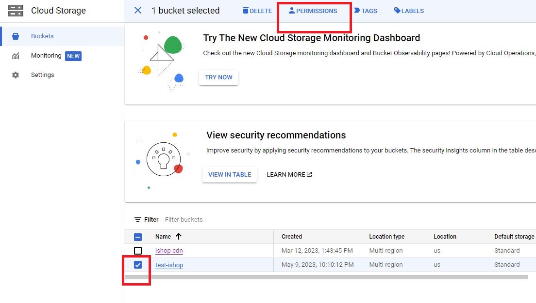 - Put your the URL of your bucket in theCDN Url field. eg. https://storage.googleapis.com/test-ishop/uploads/