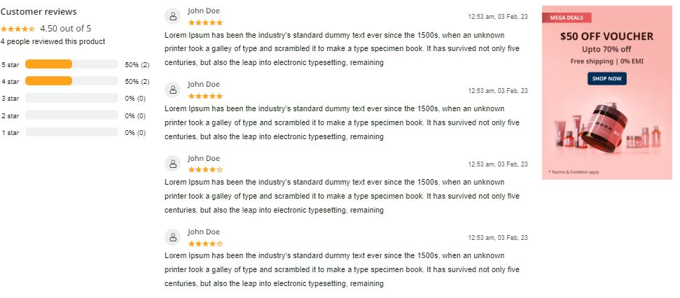 - Product rating pagination: For the pagination of product rating in detail page we have used pagination > FRONTEND_PRODUCT_RATING