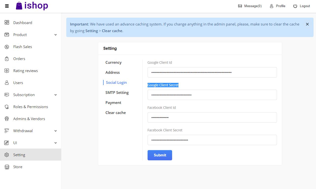 - Change the Google Client Id and Google Client Secret.